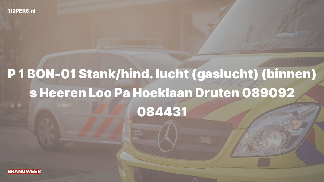 P 1 BON-01 Stank/hind. lucht (gaslucht) (binnen) s Heeren Loo Pa Hoeklaan Druten 089092 084431