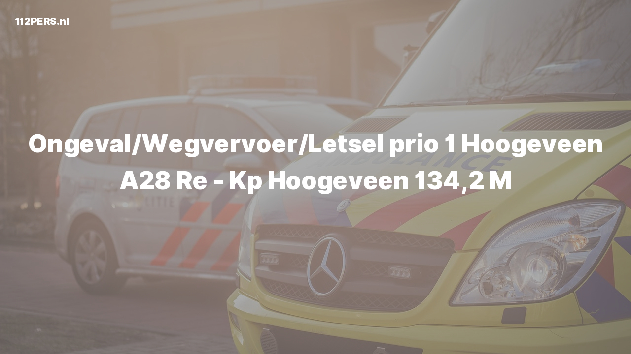 Ongeval/Wegvervoer/Letsel prio 1 Hoogeveen A28 Re - Kp Hoogeveen 134,2 M